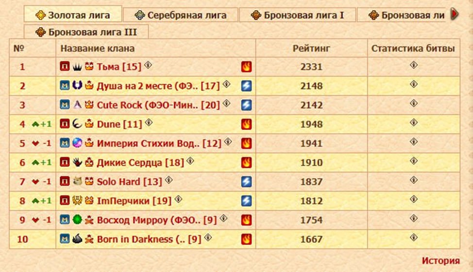 Всегда кстати: Хотелось бы видеть ребят из Дюны повыше на одну позицию, и спасибо ребятам за помощь :) Остальные места распределило с учетом текущих сил кланов.